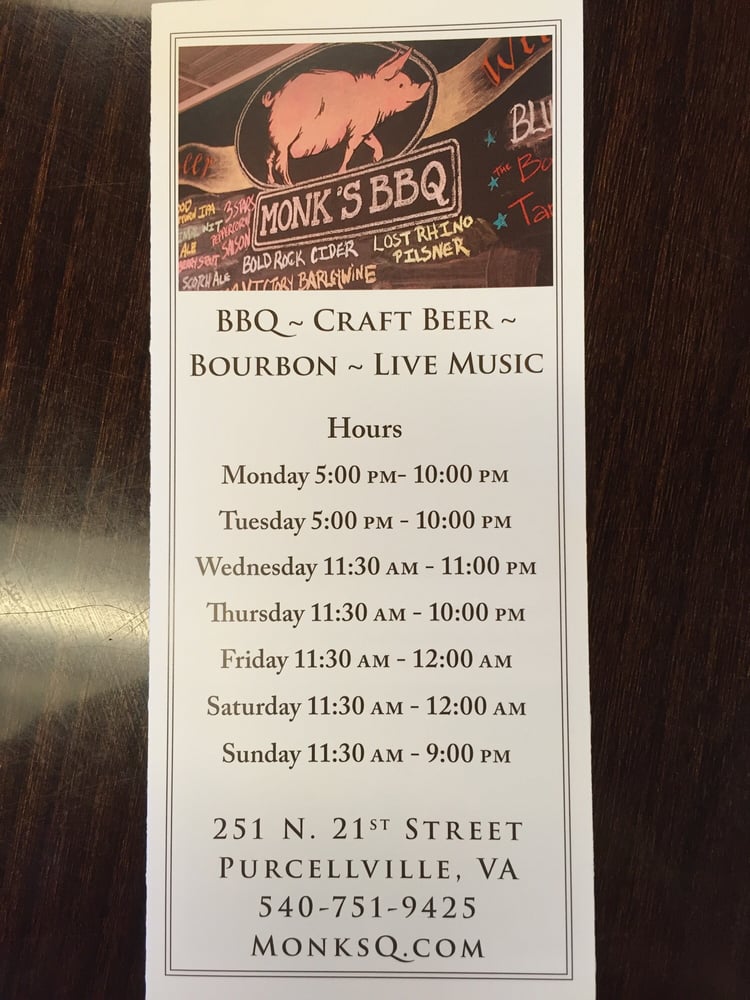 Monk's BBQ, located in Purcellville, VA, offers a wide range of flavorful barbeque dishes that cater to all meat-lovers. From the succulent Brisket Cheeseburger to the tender Smoked Turkey Breast, Monk's BBQ provides quality meats at reasonable prices. Side dishes like the Smoked Gouda Mac & Cheese and the Vinegar Slaw perfectly complement the main courses. Customers rave about the variety of options, fast service, and laid-back atmosphere of Monk's BBQ. The friendly staff and quick service make dining here a pleasant experience. Whether you're a BBQ connoisseur or just looking for a casual spot to enjoy a good meal, Monk's BBQ will not disappoint. Don't miss out on the opportunity to try their signature dishes like the Burnt Ends and the Whole Hog platter for a truly satisfying dining experience.